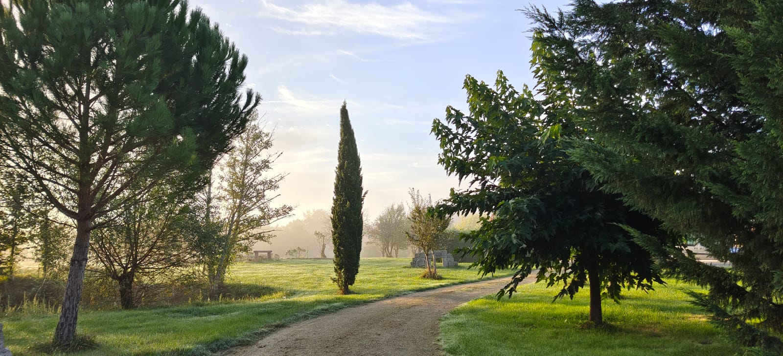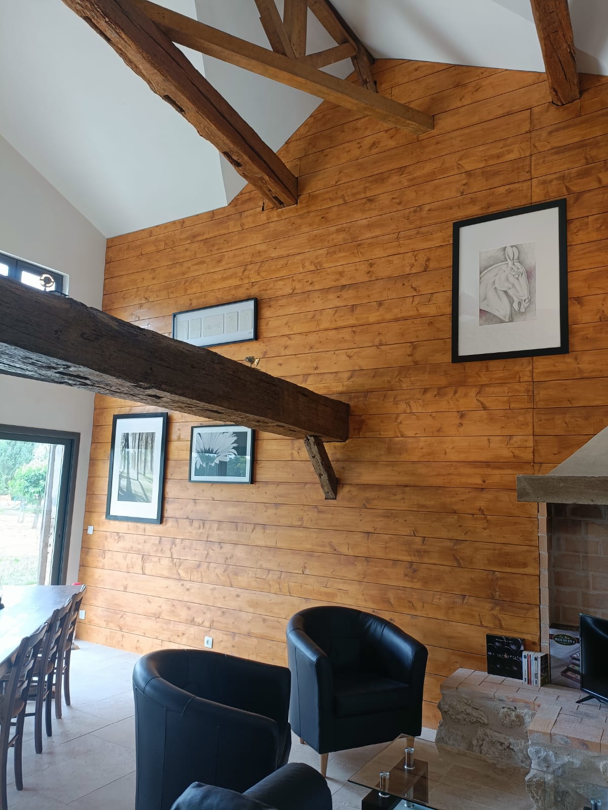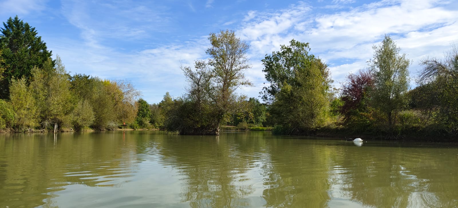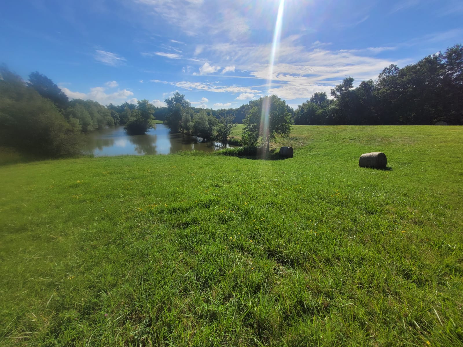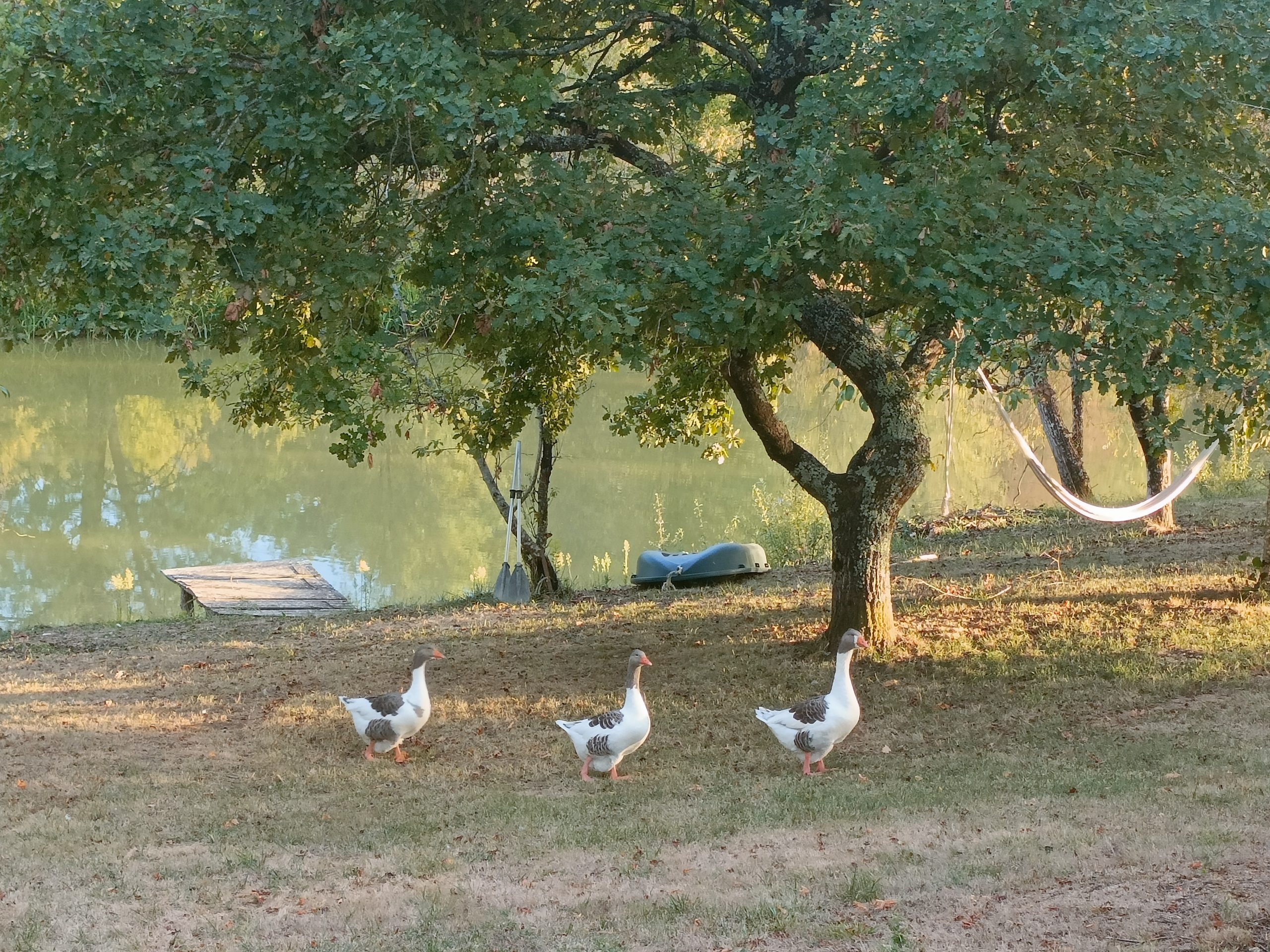 Très calme, sur propriété en campagne (15 ha) avec deux grands étangs privés pour pêche (dont black bass) et forêt privée.